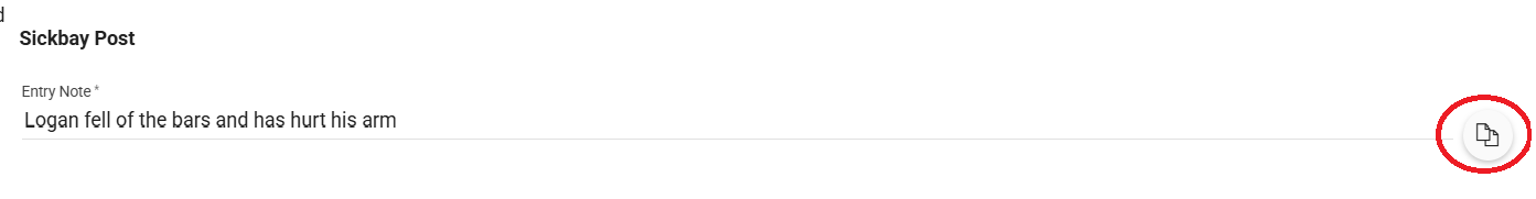 - Entry Details - Enter more information if necessary. This along with the entry note will become the content of the post on the student's medical page.