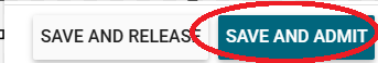 6. If the student is being retained in the sickbay, click SAVE AND ADMIT to complete the admission. If SAVE is not enabled then a required field has not been entered.