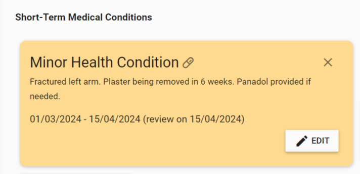 ADDING A SHORT-TERM MEDICAL CONDITION TO AN EXISTING STUDENT