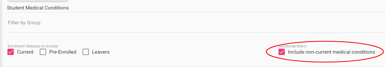 3. Click Include non-current medical conditions to include both current and expired medical conditions.