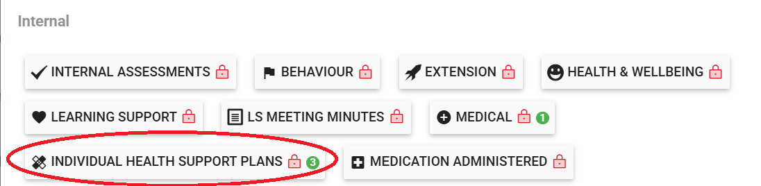 7. Medical actions plans need to be uploaded to the Individual Health Support Plans page. This page will only show in the student menu if the Individual Health Support Plan Uploaded? field is ticked prior. This field appears under a student's medical conditions. Ticking this field will also add the student to the autogroup of the same name.