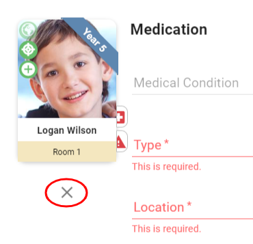 When a student has been selected, the student's profile will be displayed. Click the X if you need to remove the student.