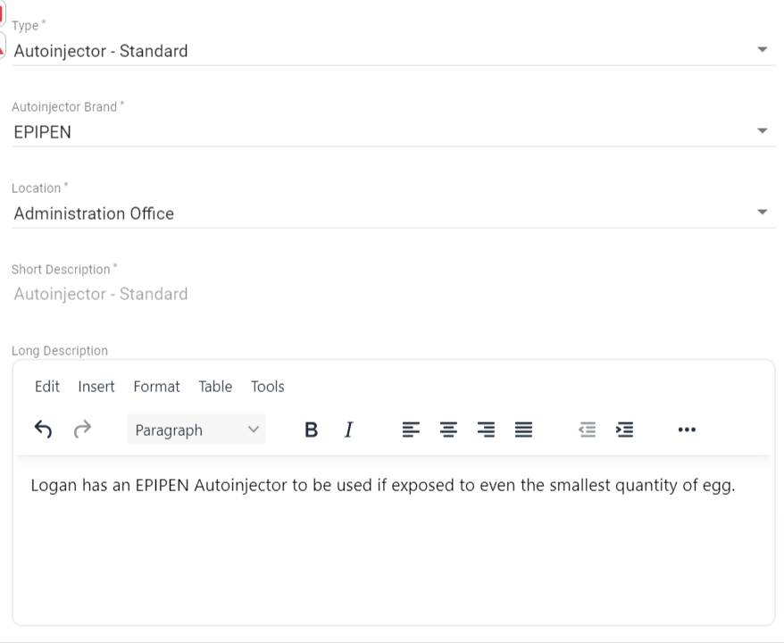- Autoinjector Brand - Will only be required if Autoinjector was selected as a Type