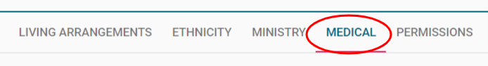 3. Click on the MEDICAL or WELLBEING Section headings. This will be determined by the location of your school i.e. country/state