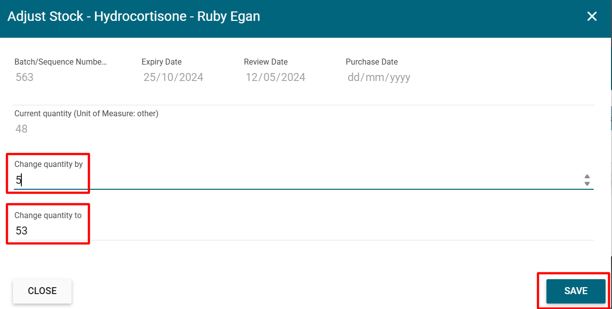 3. You are able to change the level of stock BY a quantity (+ or - an amount) OR change the level of stock TO the new quantity on hand. Click SAVE.
