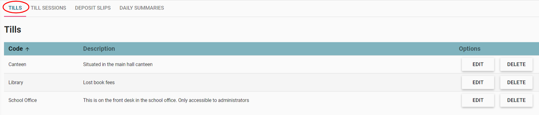 - Till Setup - Define the tills used to receive cash, cheques and money orders. These may be in the canteen, library, school office or events centre.