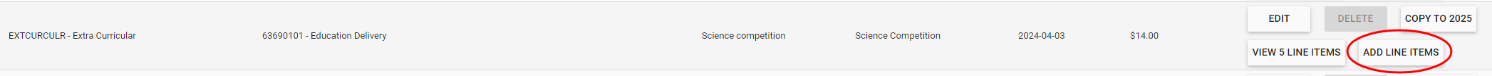 10. You can also view the line items created by selecting the VIEW LINE ITEMS