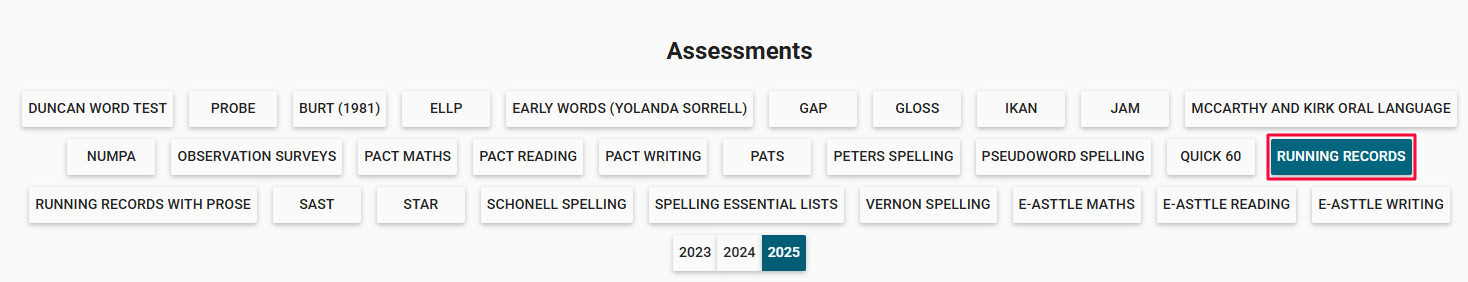 Note: When a new assessment score is entered on a different day, historic assessment data will not be overwritten or lost. A new dated row will add to the student's Assessment History area. This can be viewed by navigating to the student's profile> ... > Select the page the assessment is on> Select the assessment> Scroll to the bottom of the page