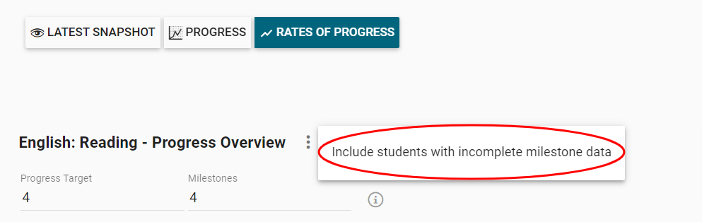 3. You may have some students in your group who have fewer data entries than the selected number of milestones - choose whether to include or exclude these students from the analysis, as above.