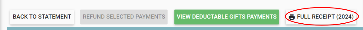 5. Click the TAX RECEIPT button for the year you require. A button will exist for any tax year containing payments.