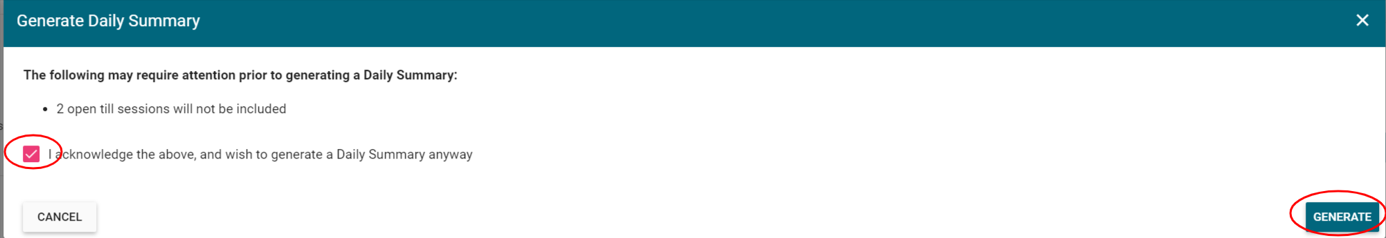 2. Click GENERATE DAILY SUMMARY.