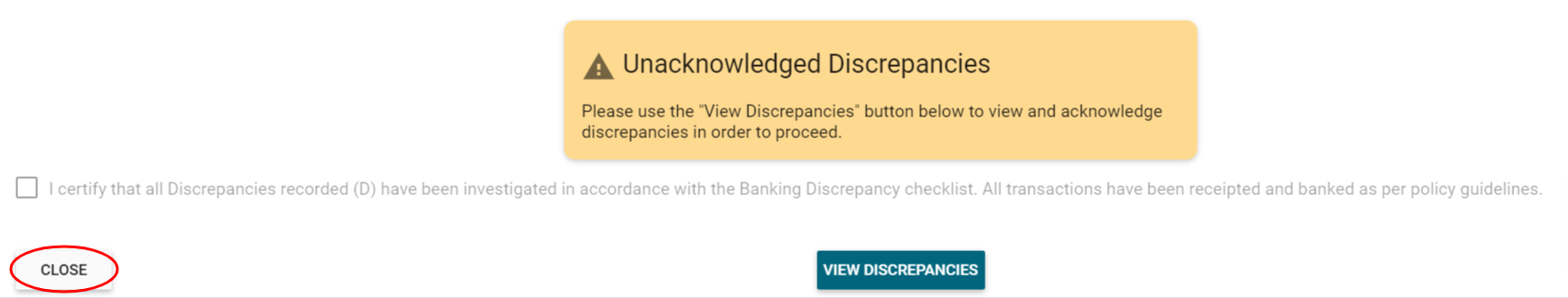 5. If the user generating the Daily Summary is not the Principal or Principal's delegate, click CLOSE to exit the report.