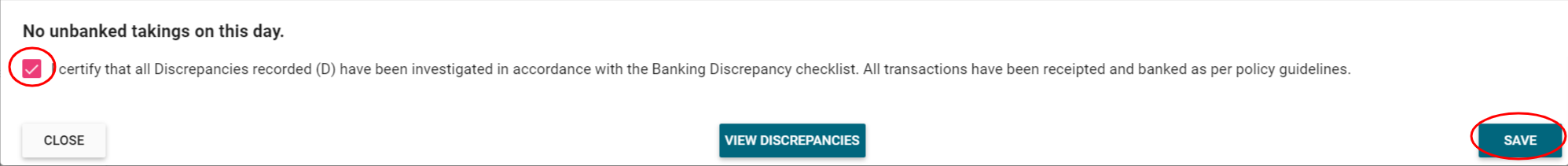 8. Once all of the above have been certified, the Principal must then acknowledge acceptance of these discrepancies and click SAVE.