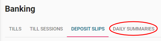 1. Navigate to BANKING > DAILY SUMMARIES. Here you will see a list of all Signed and Unsigned Daily Summaries. Unsigned denotes that the summary has not yet been approved by the Principal or Principal's delegate.