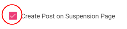11. The system is designed to create a post on a designated internal Suspension Posts Page. Uncheck 'Create Post on Suspension Page', if you do not which a post to be created in this instance.