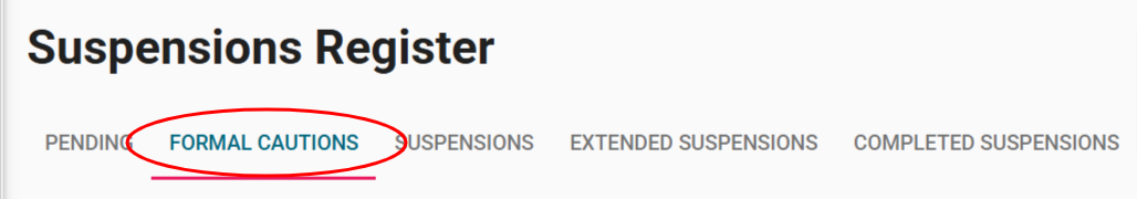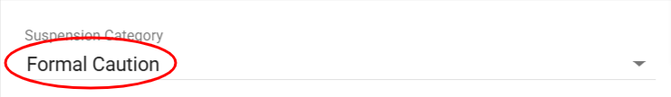 8. The entry screen will be displayed with Formal Caution as the default. Refer to this article if you wish to create a Suspension rather than a Formal Caution.
