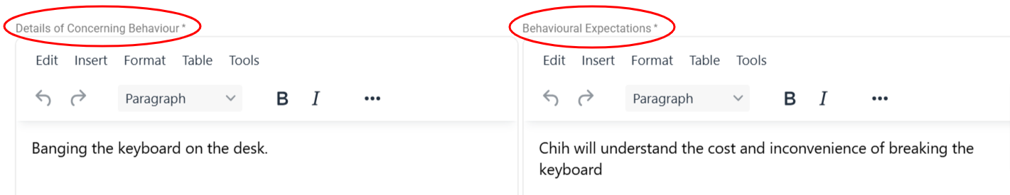 10. Enter the Details of Concerning Behaviour and the Behavioural Expectations.