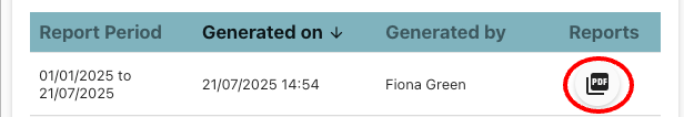 Once generated, the report snapshot will be available for all staff members to view, print or download.