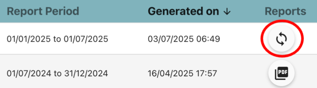 - From the table, click the PDF button to view, download or print your report as per above.