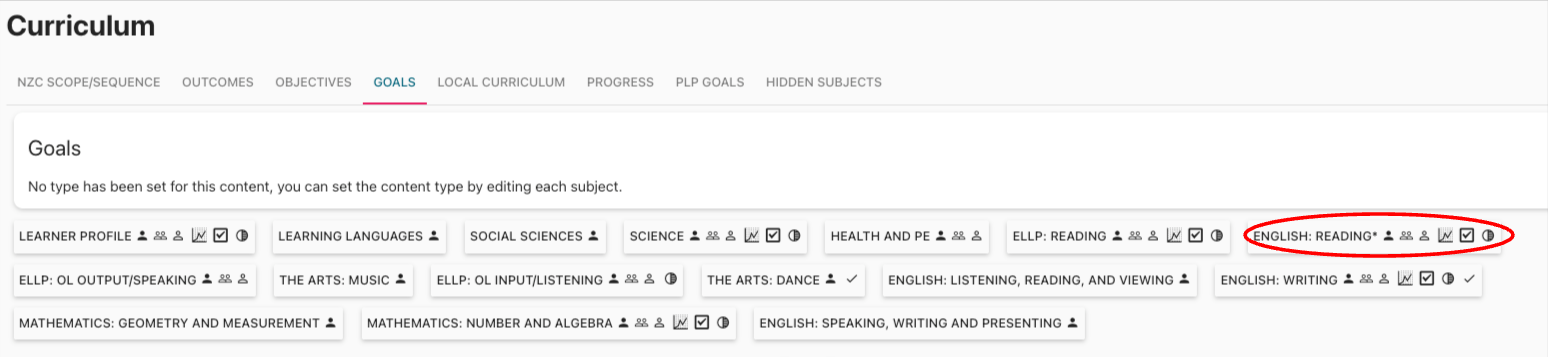 Schools can also choose to add grading to curriculum content to allow for more specific tracking of student progress. Grading can be enabled for any exisiting set of curriculum content, including outcomes and S&S. See Adding or Editing a Set of Outcomes / S&S to create new curriculum content prior to adding grading.