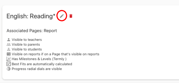 Navigate to the outcome for which you would like to have specific grades and click the Pencil Icon to edit