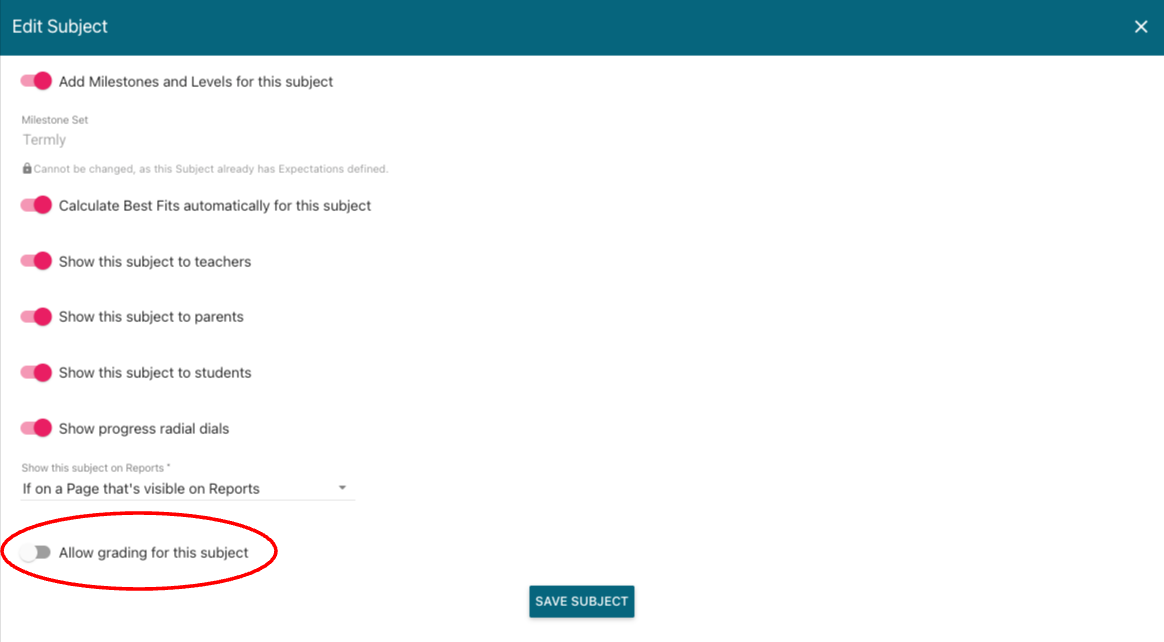 ENABLE GRADED CONTENT FOR A SUBJECT