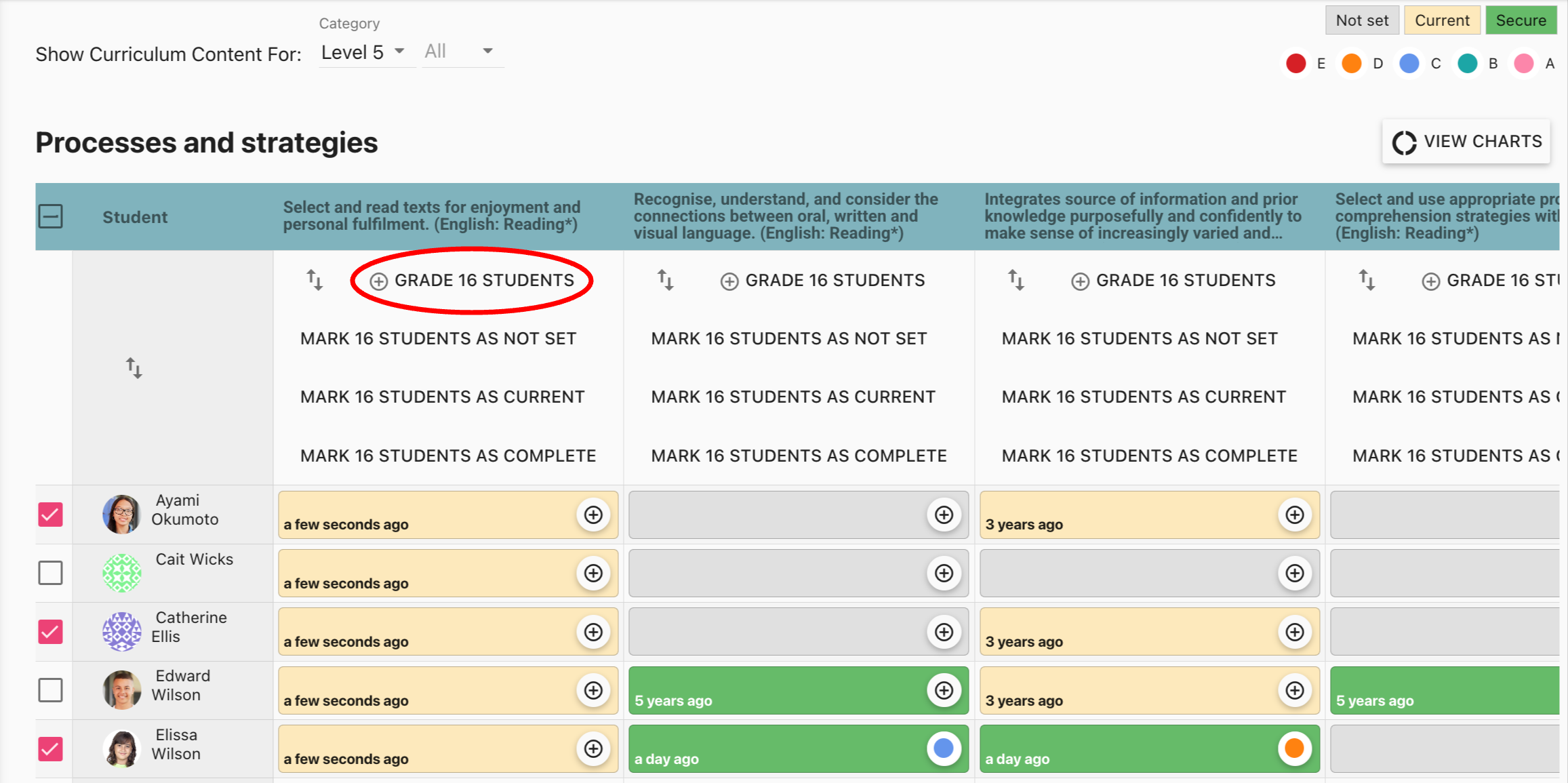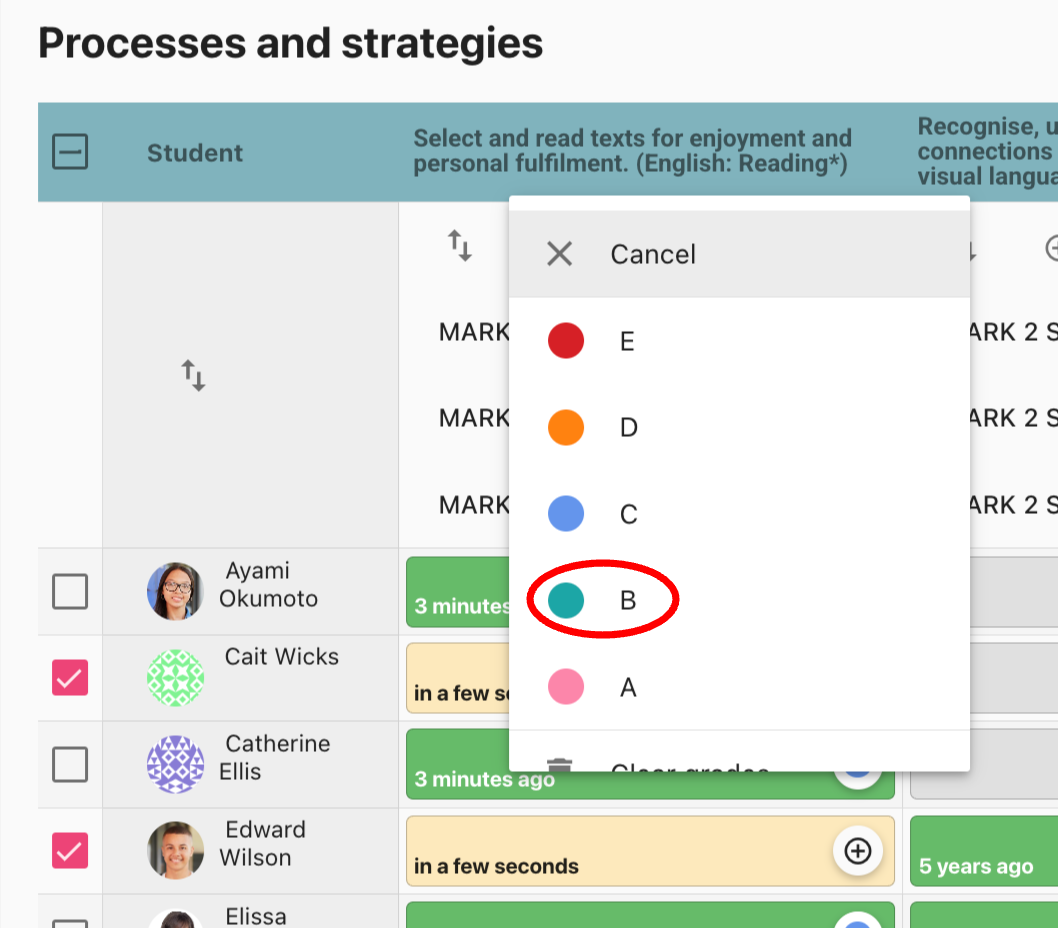 9. Repeat steps 6-8 to assign different grades to other student selections.