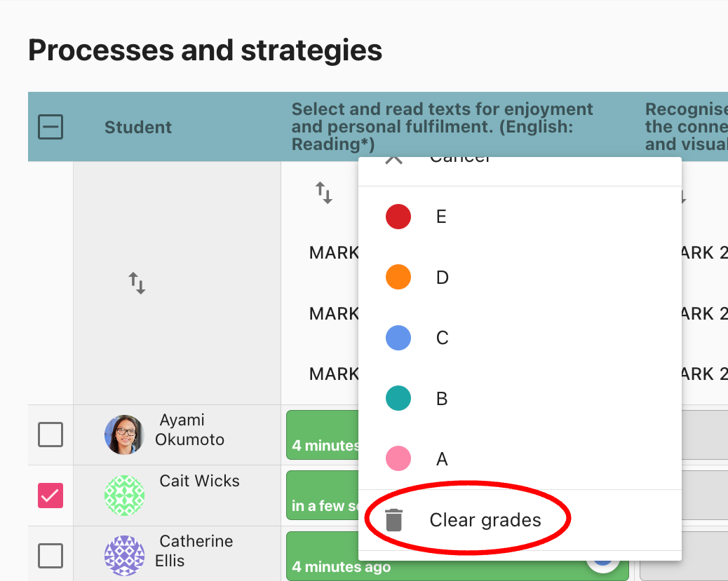 10. To clear grades repeat steps 6-8 and select Clear grades