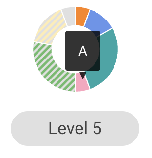 SOLID COLOUR = the proportion of graded content. The colour shows according to the proportion of assigned grades. Hover your mouse over each section to see the assigned grade value.