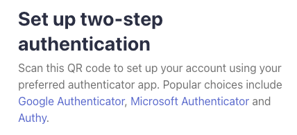 6. Follow the onscreen instructions to set up your two-step authentication method. You will need to link to an Authenticator App or follow the on-screen instructions to use your phone or a security key.