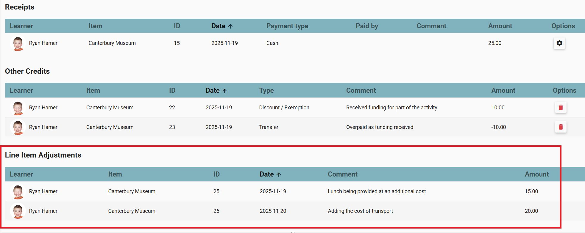 2. By clicking on the line item name, they will see the original value plus a breakdown of all transactions applied to that line item, including adjustments.