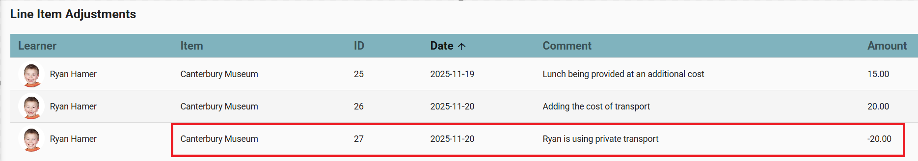 7. Click the Amount to see a record of all adjustments made.