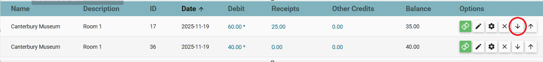 2. Find the Line Item you wish to decrease the value on. Check the amounts of any payments or credits applied against the line item. If the decrease will result in the balance becoming negative, you will need to refund a portion of the payment before you can proceed. This article will help you with that - Handling Refunds