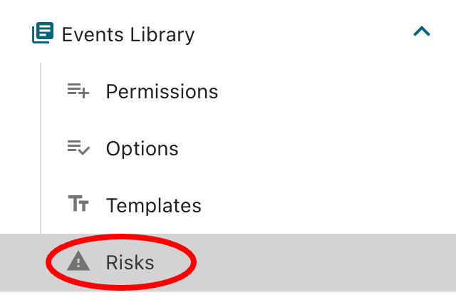 - Navigate to the Events Library in the Administration menu and select Risks from the dropdown options