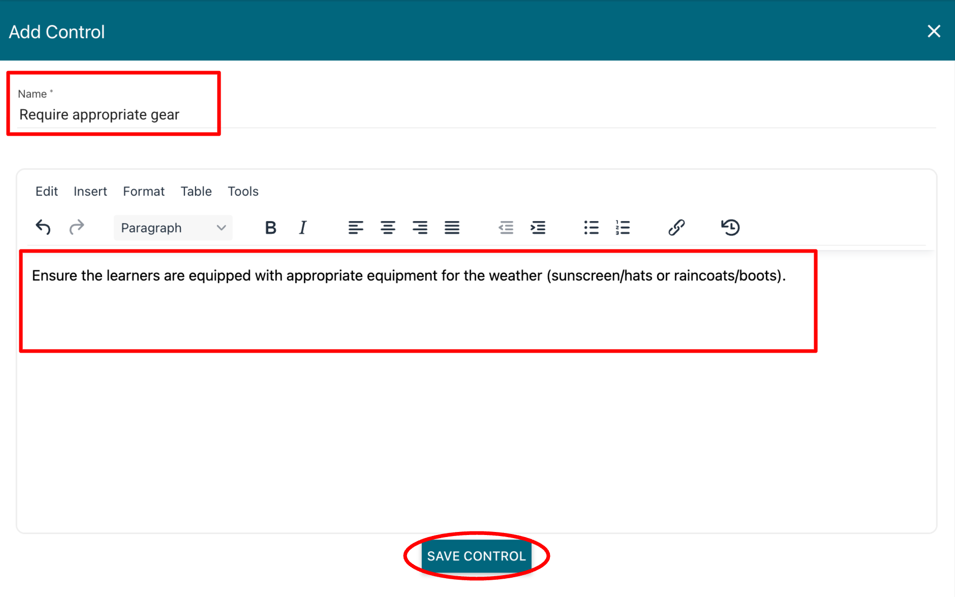 Add a Name and Description of the Control then click SAVE CONTROL. The new control will be linked to the Risk and added to the Controls library to be used again.