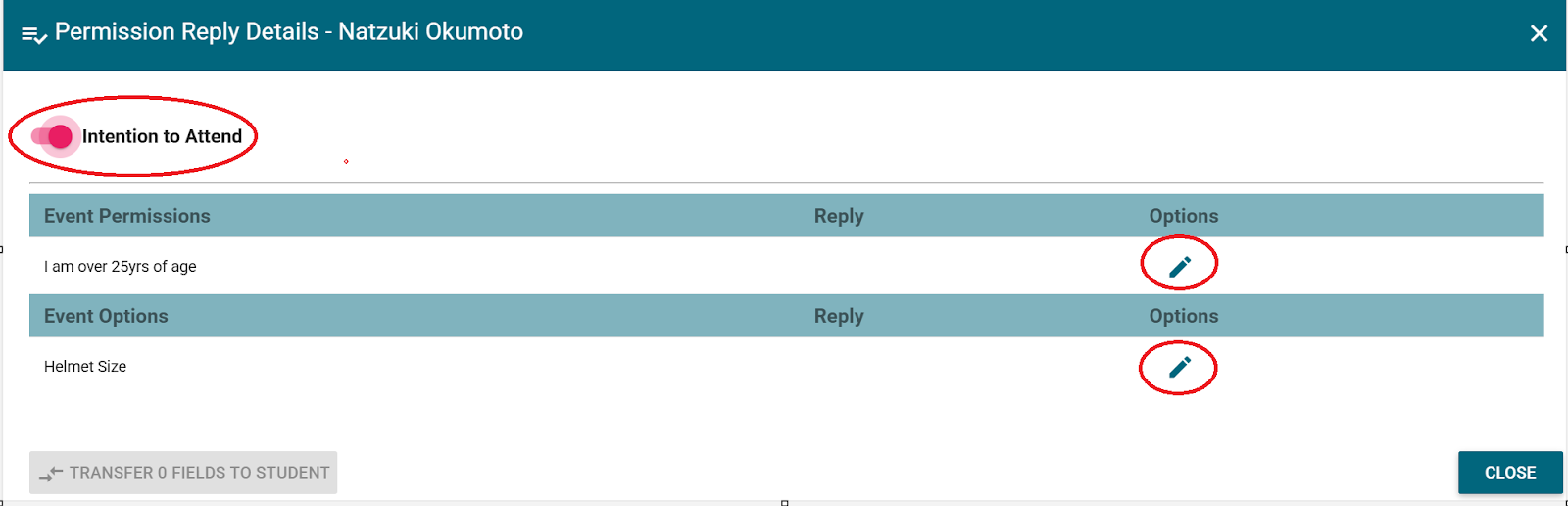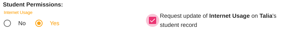When a caregiver responds to a student permission they are able to change the permission for the purpose of this event only or they may use the event to request a permanent change to the student record.