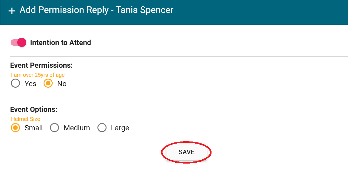Some caregivers will not be in a position to enter a response via the Hero caregiver app. A response can be completed by a teacher or Hero administrator on their behalf. The action button will allow you to enter both permissions and options.