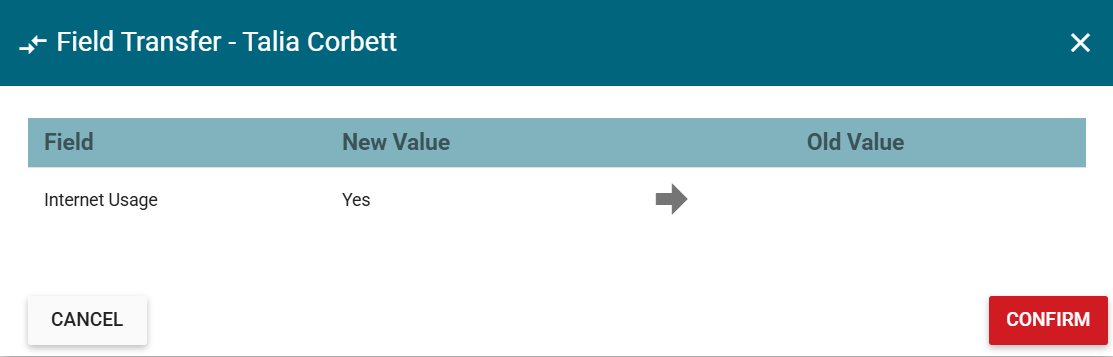 3. Click TRANSFER <> FIELDS TO STUDENT