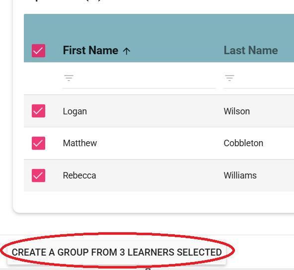 2. Click CREATE A GROUP FROM <> LEARNERS SELECTED